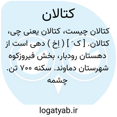 کتالان. [ ک َ ] ( اِخ ) دهی است از دهستان رودبار، بخش فیروزکوه شهرستان دماوند. سکنه 700 تن. چشمه سار. محصول آن غلات، بنشن، سیب زمینی، زردآلو، لبنیات. شغل اهالی زراعت است. ( از فرهنگ جغرافیایی ایران ج 1 ).