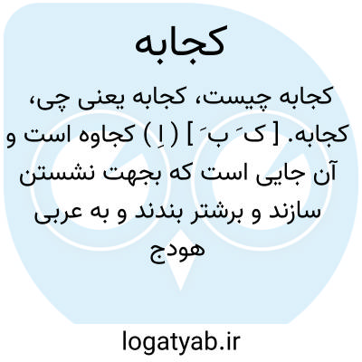کجابه. [ ک َ ب َ ] ( اِ ) کجاوه است و آن جایی است که بجهت نشستن سازند و برشتر بندند و به عربی هودج خوانند. ( برهان ) ( آنندراج ). ظعینه. کجاوه. ( زمخشری ). کجبه. کجوه. ( حاشیه برهان چ معین ): علی بن موسی الرضا به نیشابور آمد هر دو بهم در کجابه ای بودند بر یک اشتر. ( تذکرة الاولیاء از فرهنگ فارسی معین ). رجوع به کجاوه شود.