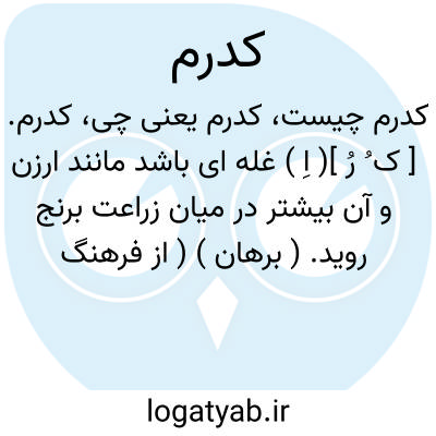 کدرم. [ ک ُ رُ ]( اِ ) غله ای باشد مانند ارزن و آن بیشتر در میان زراعت برنج روید. ( برهان ) ( از فرهنگ جهانگیری ). غله ای است مانند ارزن که در میان زراعت گندم روید و خوردن آن گردش سر آورد. ( آنندراج ) ( انجمن آرای ناصری ). آن رابه هندی کودون گویند و سبزه آن به شالی بسیار مشابه است و در هندوستان آن را تنها کارند و هر جنس آن نشأه ناک نباشد بعضی از آن نشأه پیدا کند حتی که بسبب خوردن آن آدمی تا دو روز بیهوش ماند و آن جنس خریفی است. ( سراج از حاشیه برهان چ معین ):