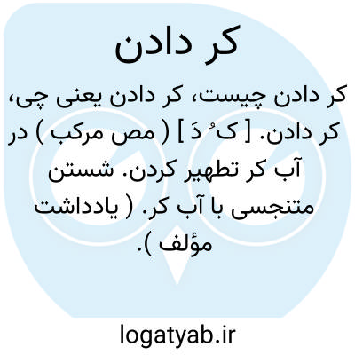 کر دادن. [ ک ُ دَ ] ( مص مرکب ) در آب کر تطهیر کردن. شستن متنجسی با آب کر. ( یادداشت مؤلف ).