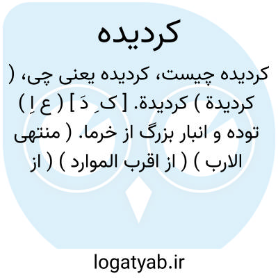 ( کردیدة ) کردیدة. [ ک ِ دَ ] ( ع اِ ) توده و انبار بزرگ از خرما. ( منتهی الارب ) ( از اقرب الموارد ) ( از ناظم الاطباء ). || خنور خرما. ( منتهی الارب ). || خرما که در تک و کرانه جله بماند. ج، کَرادید، کِراد. ( منتهی الارب ). خنور خرما و گفته اند آنچه از خرما که در تک و کرانه های خنور باقی ماند. ج، کَرادید، کِراد. ( از اقرب الموارد ).