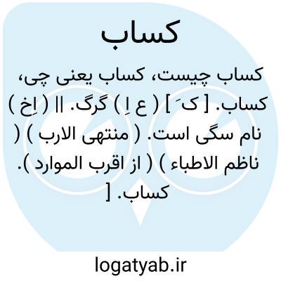 کساب. [ ک َ ] ( ع اِ ) گرگ. || ( اِخ ) نام سگی است. ( منتهی الارب ) ( ناظم الاطباء ) ( از اقرب الموارد ).