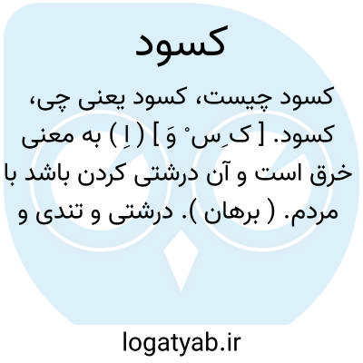 کسود. [ ک ِس ْ وَ ] ( اِ ) به معنی خرق است و آن درشتی کردن باشد با مردم. ( برهان ). درشتی و تندی و بی مهری و بی آزرمی با مردم. ( ناظم الاطباء ). و ظاهراً برساخته فرقه آذر کیوان است. ( حاشیه برهان چ معین ).