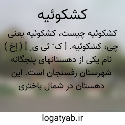 کشکوئیه. [ ک َ ئی ی ِ ] ( اِخ ) دهی است از دهستان بلورد بخش مرکزی شهرستان سیرجان واقع در 54هزارگزی خاور سعیدآباد سر راه فرعی بافت به سیرجان. آب آن از قنات و راه آن مالرو است.مزارع مارون و مورزنگی جزء این ده است و ساکنان از طایفه بچاقچی اند. ( از فرهنگ جغرافیایی ایران ج 8 ).