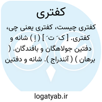 کفتری. [ ک َ ت َ ] ( اِ ) شانه و دفتین جولاهگان و بافندگان. ( برهان ) ( آنندراج ). شانه و دفتین جولاهگان. ( ناظم الاطباء ) ( فرهنگ فارسی معین ).