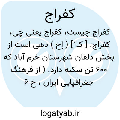 کفراج. [ ک َ] ( اِخ ) دهی است از بخش دلفان شهرستان خرم آباد که 600 تن سکنه دارد. ( از فرهنگ جغرافیایی ایران، ج 6 ).