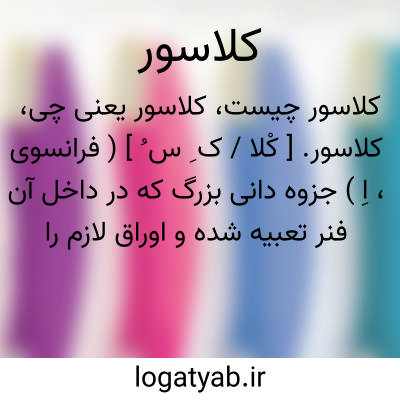کلاسور. [ کْلا / ک ِ س ُ ] ( فرانسوی، اِ ) جزوه دانی بزرگ که در داخل آن فنر تعبیه شده و اوراق لازم را بترتیب در آن جا دهند. ( فرهنگ فارسی معین ).