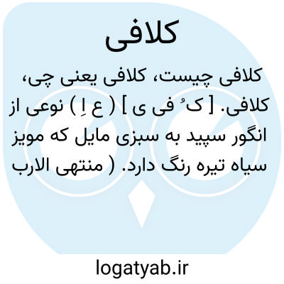 کلافی. [ ک ُ فی ی ] ( ع اِ ) نوعی از انگور سپید به سبزی مایل که مویز سیاه تیره رنگ دارد. ( منتهی الارب ).انگوری سپید مایل به سبزی منسوب به رودبار کلاف که در نزدیک مدینه است. ( ناظم الاطباء ). اسم عربی انگور سفید است که در آن سبزی باشد. ( فهرست مخزن الادویه ).