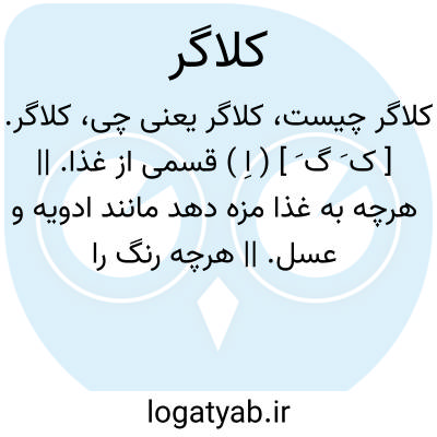 کلاگر. [ ک َ گ َ ] ( اِ ) قسمی از غذا. || هرچه به غذا مزه دهد مانند ادویه و عسل. || هرچه رنگ را تیره نماید مانند سرکه. ( ناظم الاطباء ) ( از اشتینگاس ).