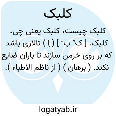 کلبک. [ ک ُ ب َ ] ( اِ ) تالاری باشد که بر روی خرمن سازند تا باران ضایع نکند. ( برهان ) ( از ناظم الاطباء ). بمعنی کلپک به بای فارسی است. ( آنندراج )... بمعنی خانه کوچکی که بر کنار کشتها سازند از جهت محافظت خرمن از باد و باران. و ظاهراً مخفف کلبه است پس به بای تازی باشداما محاوره همان اول است. ( آنندراج ). || خرمن بان را نیز گویند. رجوع به کلپک شود. || خانه کوچکی را نیز گویند که دشتبانان و فالیزبانان در فالیز و خرمن سازندو به این معنی باکاف فارسی هم به نظر آمده است ( برهان ) ( از ناظم الاطباء ). || صاحب مؤید الفضلا می گوید چیزی است که بدان خرمن اندازند. ( برهان ).
