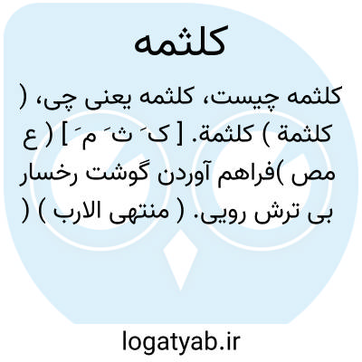 ( کلثمة ) کلثمة. [ ک َ ث َ م َ ] ( ع مص )فراهم آوردن گوشت رخسار بی ترش رویی. ( منتهی الارب ) ( آنندراج ) ( ناظم الاطباء ). جمع شدن گوشت چهره بی ترش رویی. ( از اقرب الموارد ).