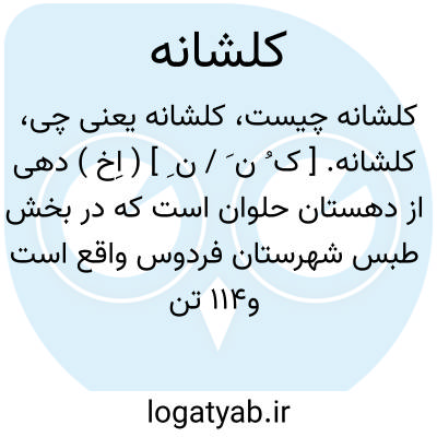 کلشانه. [ ک ُ ن َ / ن ِ ] ( اِخ ) دهی از دهستان حلوان است که در بخش طبس شهرستان فردوس واقع است و114 تن سکنه دارد. ( از فرهنگ جغرافیایی ایران ج 9 ).