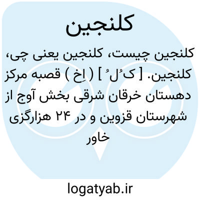 کلنجین. [ ک ُل ُ ] ( اِخ ) قصبه مرکز دهستان خرقان شرقی بخش آوج از شهرستان قزوین و در 24 هزارگزی خاور آوج واقع است.محلی کوهستانی و سردسیر است و 3703 سکنه دارد. آب آن از قنات و رودخانه کلنجین تأمین می شود و محصولش غلات و سیب زمینی و انگور و زردآلو و شغل مردم زراعت و جاجیم و جوراب بافی است و چند قلعه خرابه قدیمی دارد و امامزاده ای در وسط آبادی دیده می شود. این قصبه در قدیم مرکز خرقان بود و اکنون مرکز دهستان خرقان شرقی محسوب می شود. ( از فرهنگ جغرافیایی ایران ج 1 ).