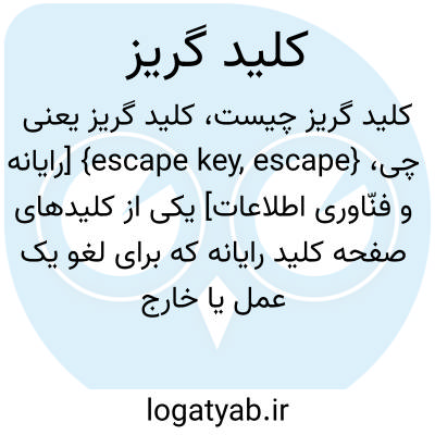 {escape key, escape} [رایانه و فنّاوری اطلاعات] یکی از کلیدهای صفحه کلید رایانه که برای لغو یک عمل یا خارج شدن از برنامه به کار می رود متـ. گریز 2