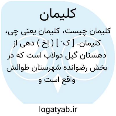 کلیمان. [ ک َ ] ( اِخ ) دهی از دهستان گیل دولاب است که در بخش رضوانده شهرستان طوالش واقع است و 572 تن سکنه دارد. ( از فرهنگ جغرافیایی ایران ج 2 ).