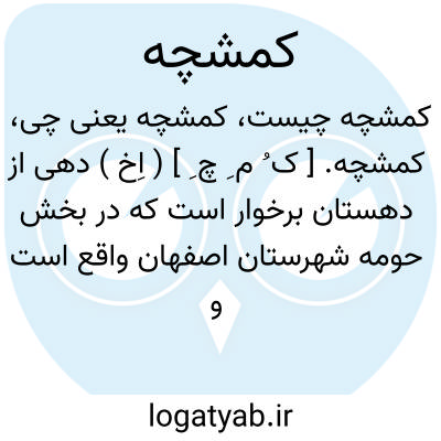 کمشچه. [ ک ُ م ِ چ ِ ] ( اِخ ) دهی از دهستان برخوار است که در بخش حومه شهرستان اصفهان واقع است و 1393 تن سکنه دارد. ( از فرهنگ جغرافیایی ایران ج 10 ).