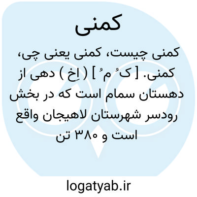 کمنی. [ ک ُ م ُ ] ( اِخ ) دهی از دهستان سمام است که در بخش رودسر شهرستان لاهیجان واقع است و 380 تن سکنه دارد. ( از فرهنگ جغرافیایی ایران ج 2 ).