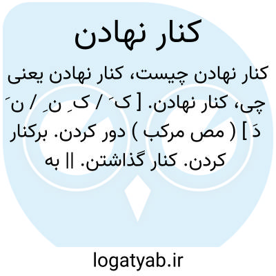 کنار نهادن. [ ک َ / ک ِ ن ِ / ن َ دَ ] ( مص مرکب ) دور کردن. برکنار کردن. کنار گذاشتن. || به آغوش نهادن. به بر گرفتن. ( یادداشت به خط مرحوم دهخدا ):