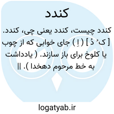 کندد. [ ک ُ دُ ] ( اِ ) جای خوابی که از چوب یا کلوخ برای باز سازند. ( یادداشت به خط مرحوم دهخدا ). || زنبورخانه. ( یادداشت به خط مرحوم دهخدا ).