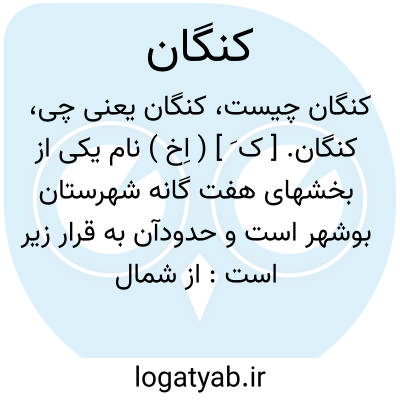 کنگان. [ ک َ ] ( اِخ ) نام یکی از بخشهای هفت گانه شهرستان بوشهر است و حدودآن به قرار زیر است: از شمال به بخش مرکزی و قیر و کارزین شهرستان فیروزآباد. از خاور به بخش بستک شهرستان لار. از باختر به بخش خورموج. از جنوب به خلیج فارس و بخش گاوبندی از شهرستان لار. این بخش از 9 دهستان: ثلاث، مالکی، تمیمی، وراوی، آل حرم، جم، گله دار، علامرودشت و تراکمه تشکیل شده ومجموع قرای و قصبات آن 175 و جمعیت آن در حدود 43500 تن است. مرکز بخش قصبه و بندر کنگان است. ( از فرهنگ جغرافیایی ایران ج 7 ).