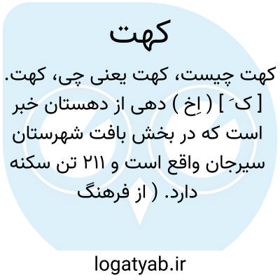 کهت. [ ک َ ] ( اِخ ) دهی از دهستان خبر است که در بخش بافت شهرستان سیرجان واقع است و 211 تن سکنه دارد. ( از فرهنگ جغرافیایی ایران ج 8 ).