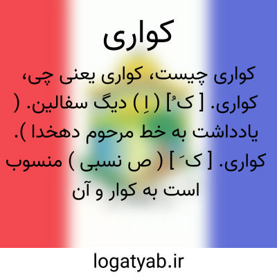 کواری. [ ک َ ] ( ص نسبی ) منسوب است به کوار و آن ناحیه یا شهرکی است در فارس. ( از انساب سمعانی ). و رجوع به کوار شود.