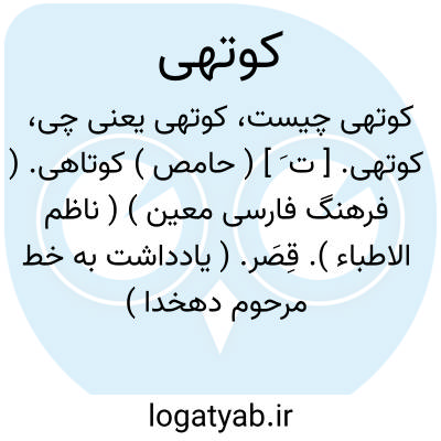 کوتهی. [ ت َ ] ( حامص ) کوتاهی. ( فرهنگ فارسی معین ) ( ناظم الاطباء ). قِصَر. ( یادداشت به خط مرحوم دهخدا ):