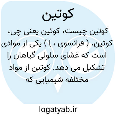 کوتین. ( فرانسوی، اِ ) یکی از موادی است که غشای سلولی گیاهان را تشکیل می دهد. کوتین از مواد مختلفه شیمیایی که ساختمان قطعی آنها بر علمای شیمی مجهول است و همچنین از اسیدهای مختلف آلی و سرین که یکی از مواد مومی O H32 C20 است ترکیب یافته است. ( گیاه شناسی ثابتی ص 38 و 56 ).