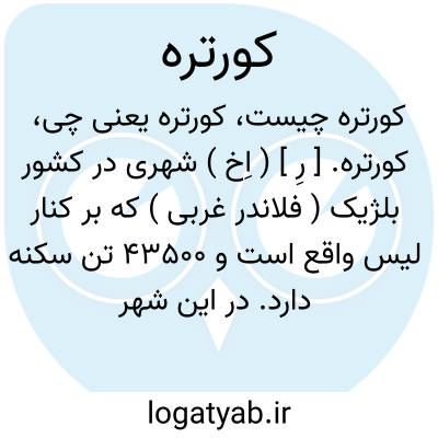 کورتره. [ رِ ] ( اِخ ) شهری در کشور بلژیک ( فلاندر غربی ) که بر کنار لیس واقع است و 43500 تن سکنه دارد. در این شهر کارخانه های پارچه بافی، تهیه نخهای پنبه ای و کلاه سازی دایر است. در سال 1302 م. در جنگ مهمیز طلائی ها به دست فلاماندها افتاد. ( از لاروس ).