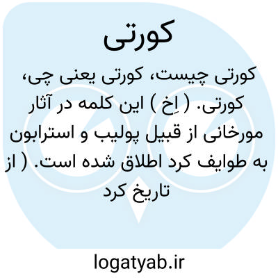 کورتی. ( اِخ ) این کلمه در آثار مورخانی از قبیل پولیب و استرابون به طوایف کرد اطلاق شده است. ( از تاریخ کرد تألیف رشیدیاسمی ). رجوع به همان مأخذ ص 93، 95، 159 و 160 شود.