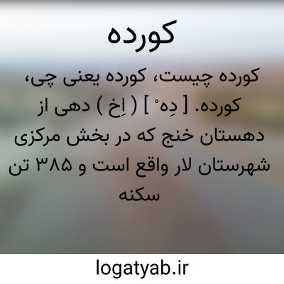کورده. [ دِه ْ ] ( اِخ ) دهی از دهستان خنج که در بخش مرکزی شهرستان لار واقع است و 385 تن سکنه دارد. ( از فرهنگ جغرافیایی ایران ج 7 ).
