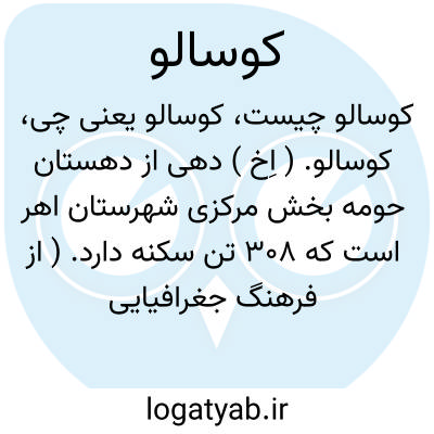 کوسالو. ( اِخ ) دهی از دهستان حومه بخش مرکزی شهرستان اهر است که 308 تن سکنه دارد. ( از فرهنگ جغرافیایی ایران ج 4 ).