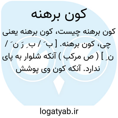 کون برهنه. [ ب َ / ب ِ رَ ن َ / ن ِ ] ( ص مرکب ) آنکه شلوار به پای ندارد. آنکه کون وی پوشش نداشته باشد. آنکه جفته و سرین وی لخت باشد: