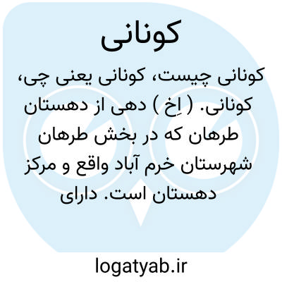 کونانی. ( اِخ ) دهی از دهستان طرهان که در بخش طرهان شهرستان خرم آباد واقع و مرکز دهستان است. دارای 300 تن سکنه است که از طایفه کونانی هستند. ( از فرهنگ جغرافیایی ایران ج 6 ).