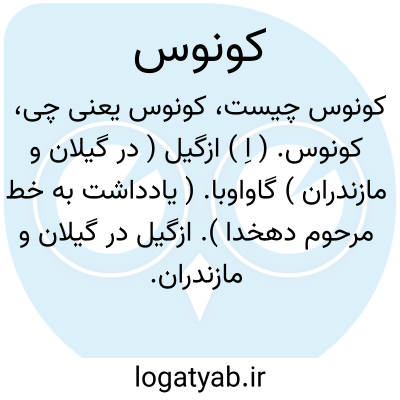 کونوس. ( اِ ) ازگیل ( در گیلان و مازندران ) گاواوبا. ( یادداشت به خط مرحوم دهخدا ). ازگیل در گیلان و مازندران. کنس. کنوس. ( جنگل شناسی تألیف کریم ساعی ج 2 ص 235 ).