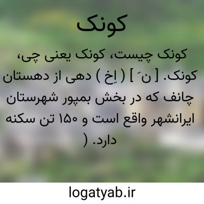 کونک. [ ن َ ] ( اِخ ) دهی از دهستان چانف که در بخش بمپور شهرستان ایرانشهر واقع است و 150 تن سکنه دارد. ( از فرهنگ جغرافیایی ایران ج 8 ).