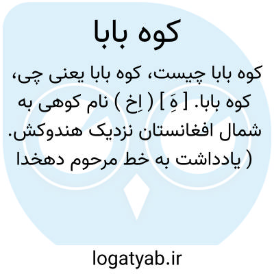 کوه بابا. [ هَِ ] ( اِخ ) نام کوهی به شمال افغانستان نزدیک هندوکش. ( یادداشت به خط مرحوم دهخدا ). کوهی بزرگ از شاخه های هیمالیا در آسیای میانه است که در داخل افغانستان واقع است و از 65 درجه و 40 دقیقه تا 64 درجه طول شرقی امتداد دارد. ( از قاموس الاعلام ترکی ).