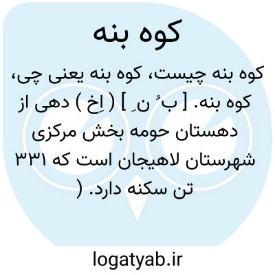 کوه بنه. [ ب ُ ن ِ ] ( اِخ ) دهی از دهستان حومه بخش مرکزی شهرستان لاهیجان است که 331 تن سکنه دارد. ( از فرهنگ جغرافیایی ایران ج 2 ).