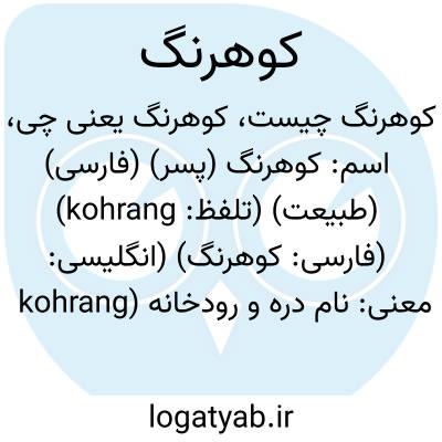 اسم: کوهرنگ (پسر) (فارسی) (طبیعت) (تلفظ: kohrang) (فارسی: کوهرنگ) (انگلیسی: kohrang)