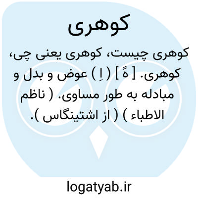 کوهری. [ هََ ] ( اِ ) عوض و بدل و مبادله به طور مساوی. ( ناظم الاطباء ) ( از اشتینگاس ).