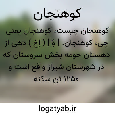 کوهنجان. [ هَِ ] ( اِخ ) دهی از دهستان حومه بخش سروستان که در شهرستان شیراز واقع است و 1250 تن سکنه دارد. ( از فرهنگ جغرافیایی ایران ج 7 ).