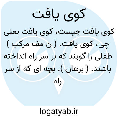 کوی یافت. ( ن مف مرکب ) طفلی را گویند که بر سر راه انداخته باشند. ( برهان ). بچه ای که از سر راه بردارند. لقیط. ( ناظم الاطباء ). یافته کوی. کودکی که وی را در راهی افکنده باشند و کسی او را برداشته و تربیت کند. بچه سرراهی.( فرهنگ فارسی معین ). بچه سرراهی. منبوذ. ابناءالسکک. لقیط. ( از یادداشت به خط مرحوم دهخدا ). || در لغت اسدی آن را مرادف حرام زاده و سند و سنده آورده است ولی معنی اولی آن بچه سرراهی است و آن اعم از سند و غیر سند است. مجازاً، حرام زاده. ( از یادداشت به خط مرحوم دهخدا ). حرام زاده. ( ناظم الاطباء ).