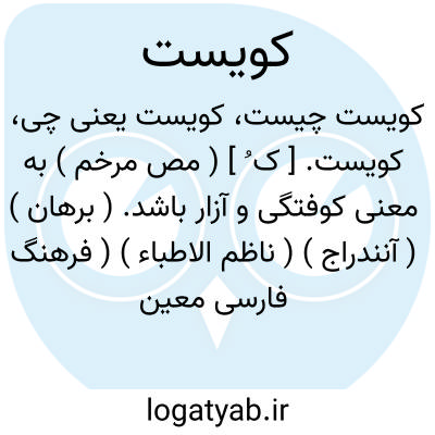 کویست. [ ک ُ ] ( مص مرخم ) به معنی کوفتگی و آزار باشد. ( برهان ) ( آنندراج ) ( ناظم الاطباء ) ( فرهنگ فارسی معین ). رجوع به کویستن شود.