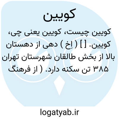 کویین. [ ] ( اِخ ) دهی از دهستان بالا از بخش طالقان شهرستان تهران 385 تن سکنه دارد. ( از فرهنگ جغرافیایی ایران ج 1 ).