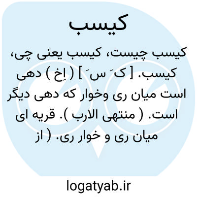 کیسب. [ ک َ س َ ] ( اِخ ) دهی است میان ری وخوار که دهی دیگر است. ( منتهی الارب ). قریه ای میان ری و خوار ری. ( از معجم البلدان ). شاید این قریه، ایوان کی کنونی باشد. ( از یادداشت به خط مرحوم دهخدا ).