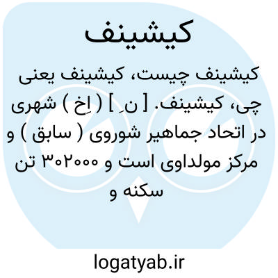کیشینف. [ ن ِ ] ( اِخ ) شهری در اتحاد جماهیر شوروی ( سابق ) و مرکز مولداوی است و 302000 تن سکنه و کارخانه ذوب فلزات دارد. ( از لاروس ).