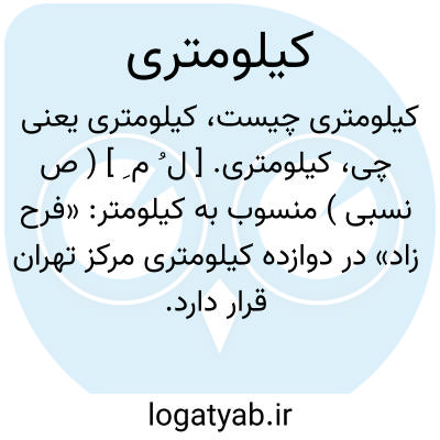 ( صفت ) منسوب به کیلو متر: کرج در ۳۶ کیلو متری تهران واقع است.