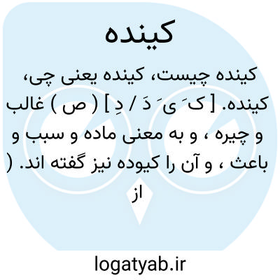 کینده. [ ک َ ی َ دَ / دِ ] ( ص ) غالب و چیره، و به معنی ماده و سبب و باعث، و آن را کیوده نیز گفته اند. ( از فرهنگ دساتیر ) ( انجمن آرا ) ( آنندراج ). فاتح و غالب و مظفر و فیروز. ( ناظم الاطباء ).