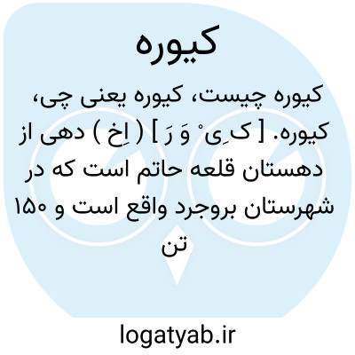 کیوره. [ ک ِی ْ وَ رَ ] ( اِخ ) دهی از دهستان قلعه حاتم است که در شهرستان بروجرد واقع است و 150 تن سکنه دارد. ( از فرهنگ جغرافیایی ایران ج 6 ).