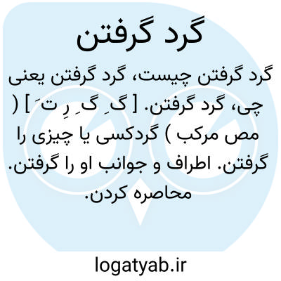 گرد گرفتن. [ گ ِ گ ِ رِ ت َ ] ( مص مرکب ) گردکسی یا چیزی را گرفتن. اطراف و جوانب او را گرفتن. محاصره کردن. اِغتفاق. ( از منتهی الارب ):
